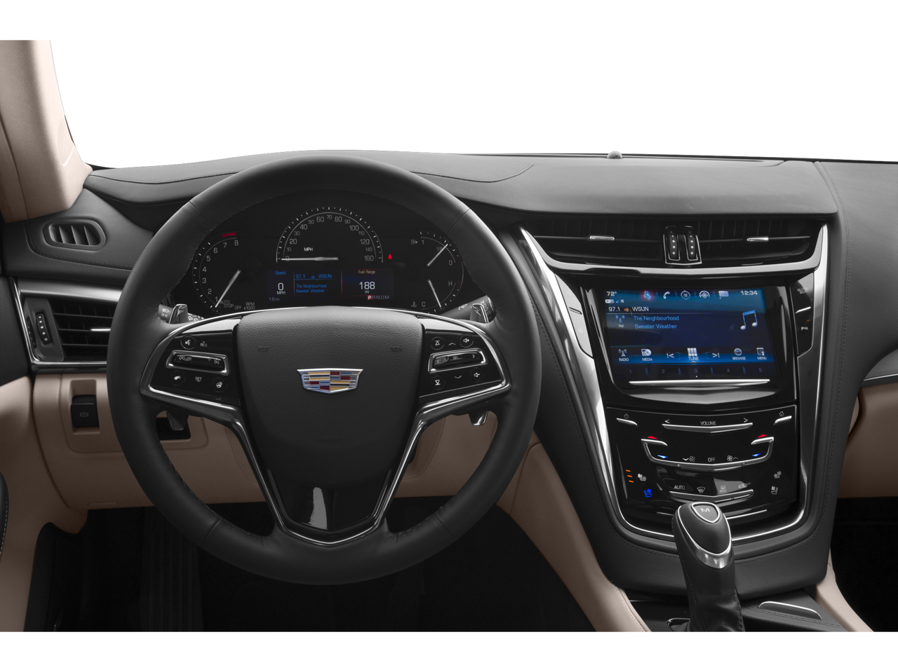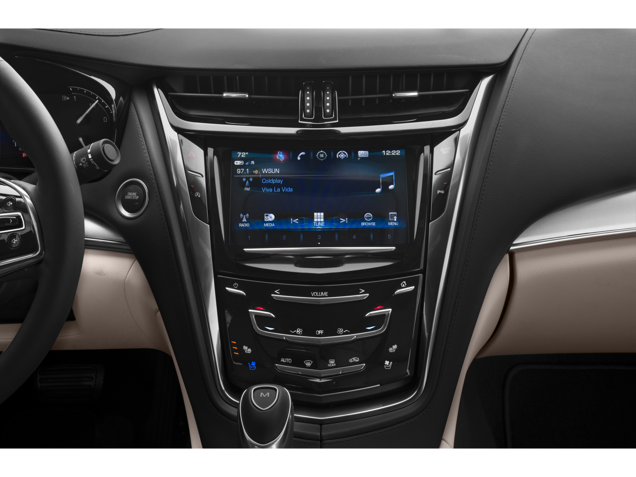 WHEELS, 18" X 8.5" (45.7 CM X 21.6 CM) 15-SPOKE POLISHED ALLOY, REAR CAMERA MIRROR, LPO, ALL-WEATHER MAT PROTECTION PACKAGE includes (VAV) Premium all-weather floor mats, LPO and (VLI) Premium all-weather cargo mat, LPO, CADILLAC USER EXPERIENCE WITH EMBEDDED NAVIGATION AM/FM stereo with connected navigation providing real-time traffic, 8" diagonal color information display, two USB ports, personalized profiles for each driver's settings, Natural Voice Recognition, Phone Integration for Apple CarPlay® and Android Auto® capability for compatible phone, Connected Apps and Teen Driver (STD), ENGINE, 3.6L V6, SIDI, DOHC, VVT with Active Fuel Management and Automatic Stop/Start (335 hp [250 kW] @ 6800 rpm, 285 lb-ft of torque [386 N-m] @ 5300 rpm) (STD), TRANSMISSION, 8-SPEED AUTOMATIC (STD).