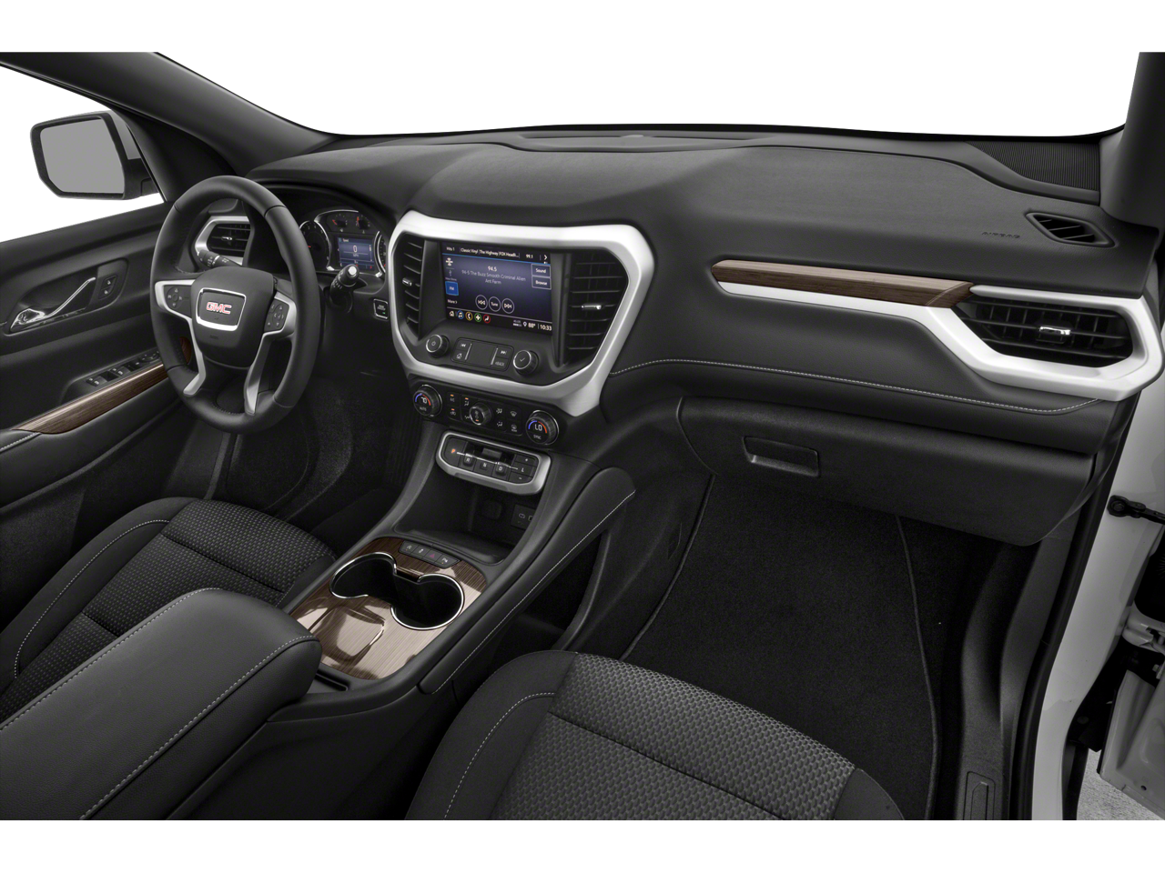 DRIVER CONVENIENCE PACKAGE includes (A2X) 8-way power driver seat adjuster, (KA1) driver and front passenger heated seats, (AL9) power driver lumbar control, (BTV) Remote Start, (TC2) hands-free power programmable liftgate and (KI6) 120-volt power outlet (Includes (V64) brushed aluminum roof rails.), ENGINE, 3.6L V6, SIDI, DOHC with Variable Valve Timing (VVT) (310 hp [231.1 kW] @ 6600 rpm, 271 lb-ft of torque [365.9 N-m]) @ 5000 rpm, LPO, FLOOR LINER PACKAGE includes (RIA) front and second row all-weather floor liner, LPO, (RIB) third row all-weather floor liner, LPO and (CAV) integrated cargo liner, LPO, AUDIO SYSTEM, 8" DIAGONAL GMC INFOTAINMENT SYSTEM includes multi-touch display, AM/FM stereo, includes Bluetooth® streaming audio for music and most phones; featuring Android Auto® and Apple CarPlay® capability for compatible phones (STD), TRANSMISSION, 9-SPEED AUTOMATIC, ELECTRONICALLY-CONTROLLED with 3.6L V6 engine. GMC SLE with Summit White exterior and Jet Black interior features a V6 Cylinder Engine with 310 HP at 6600 RPM*.
