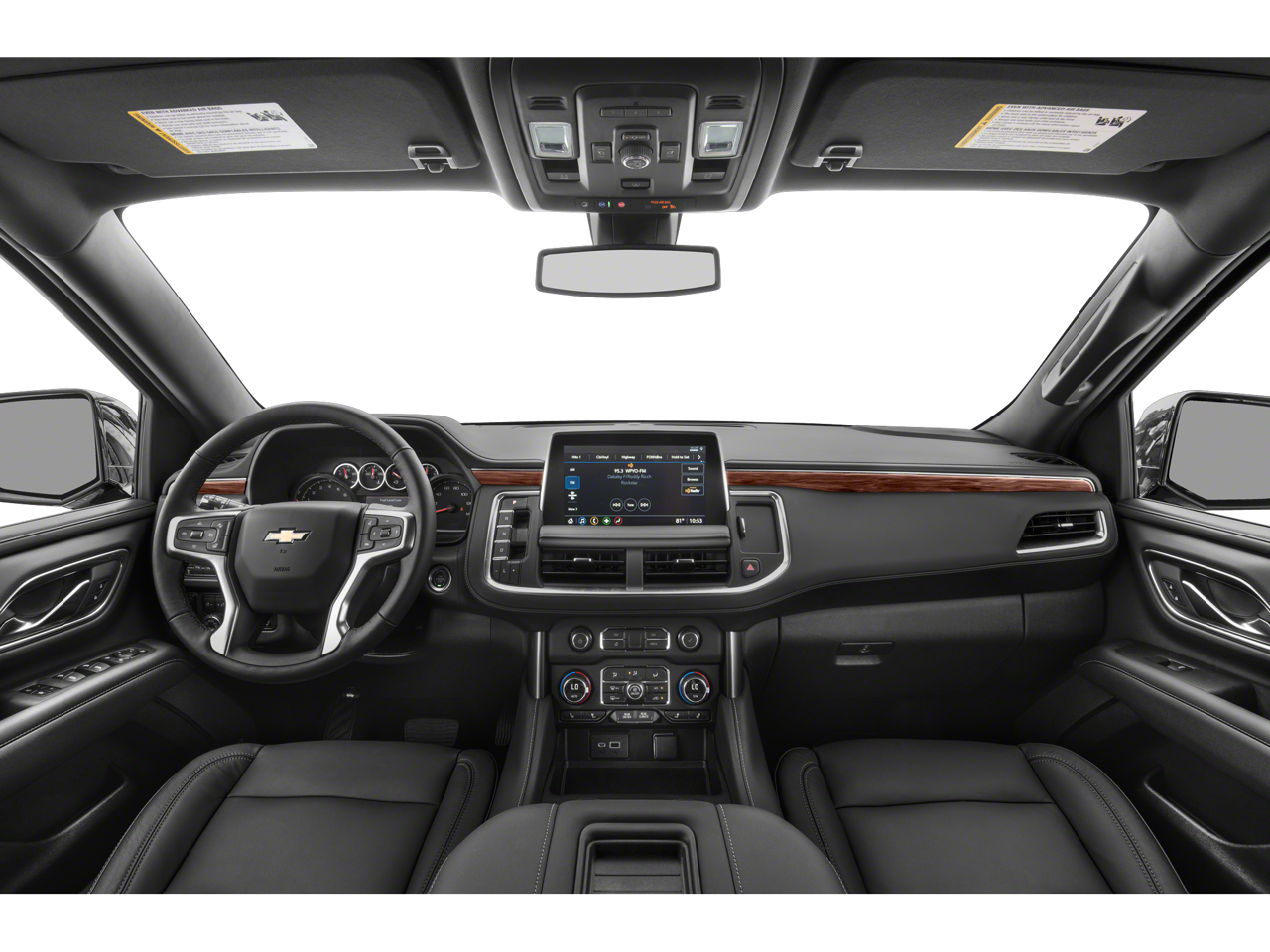 LUXURY PACKAGE includes (WPD) Driver Alert Package content, (UV2) HD Surround Vision, (UKK) Rear Pedestrian Alert, (A45) memory settings, (DXR) outside heated power-adjustable, power-folding, body-color mirrors with driver-side auto-dimming and integrated turn signal indicators, (N38) power tilt and telescopic steering column, (KI3) heated steering wheel, (KA6) second row outboard heated seats, (ATT) second row power 60/40 split-folding bench seats and (AS8) third row power 60/40 split-folding bench seats, SUNROOF, POWER PANORAMIC, DUAL-PANE, TILT-SLIDING with express-open and close and power sunshade, WHEELS, 20" X 9" (50.8 CM X 22.9 CM) PAINTED ALUMINUM WITH MACHINE FACE AND ARGENT METALLIC POCKETS, SEATS, SECOND ROW BUCKET, POWER RELEASE, AUDIO SYSTEM, CHEVROLET INFOTAINMENT 3 PREMIUM SYSTEM WITH GOOGLE BUILT-IN 10.2" diagonal HD color touchscreen, includes multi-touch display, AM/FM stereo, Bluetooth® streaming audio for music and most phones; featuring wireless Android Auto® and Apple CarPlay® capability for compatible phones, advanced voice recognition, in-vehicle apps, personalized profiles for infotainment and vehicle settings.) (STD), STEERING WHEEL, HEATED, ENGINE, 5.3L ECOTEC3 V8 with Dynamic Fuel Management, Direct Injection and Variable Valve Timing, includes aluminum block construction (355 hp [265 kW] @ 5600 rpm, 383 lb-ft of torque [518 Nm] @ 4100 rpm) (STD), TRANSMISSION, 10-SPEED AUTOMATIC electronically controlled with overdrive, includes Traction Select System including tow/haul (Standard with (L84) 5.3L EcoTec3 V8 engine only.) (STD), DRIVER ALERT PACKAGE includes (UKC) Lane Change Alert with Side Blind Zone Alert and (UFG) Rear Cross Traffic Alert. Chevrolet LT with SUMMIT WHITE exterior and JET BLACK interior features a 8 Cylinder Engine with 355 HP at 5600 RPM*.
